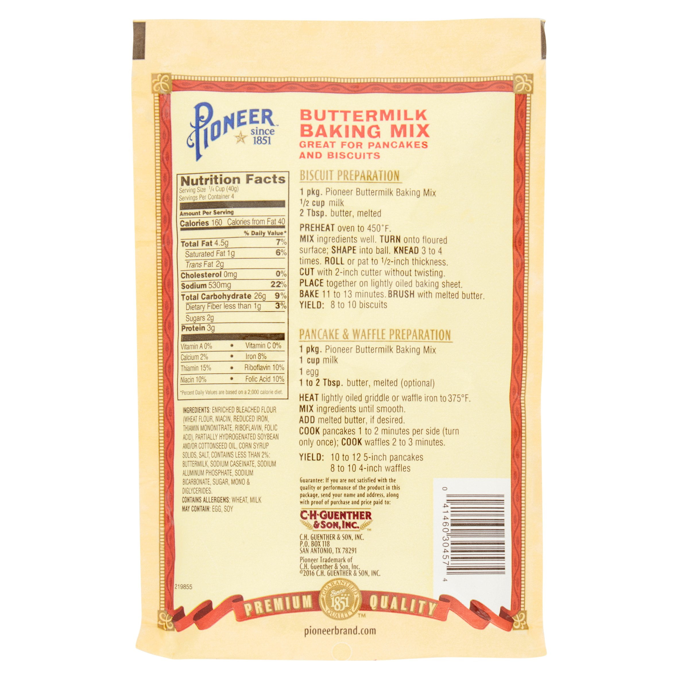 Pioneer Original Buttermilk Pancake Mix Pioneer from pioneerbrand.com This made them a reliable food source for traveling pioneers. This recipe requires a cast iron skillet that you can place on the fire or heat source to get a decent crust on the base and sides of the cornbread before baking it in the oven. 2 cup pioneer original or buttermilk baking mix. Place three cups of baking mix into a bowl and add one cup of milk. Cream shortening and gradually add 1 cup brown sugar and then add egg yolks in one brisk beating. 1 quart chicken or beef broth. Bake 20 minutes or until golden brown. Bake for 20 to 25 minutes.